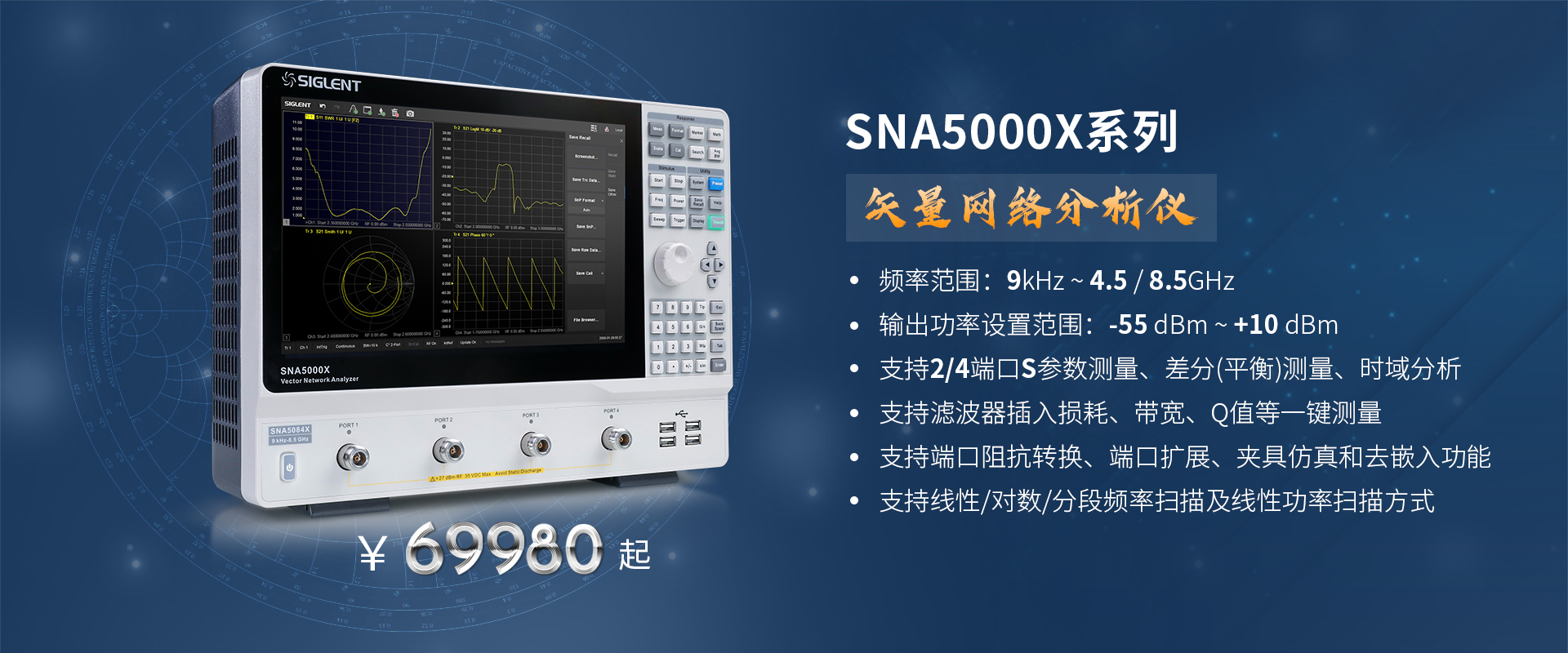 SNA5000X系列矢量網絡分析儀(Vector Network Analyzer),其測量頻率高達8.5GHz,支持4端口S參數測量,差分(平衡)測量,時域測...